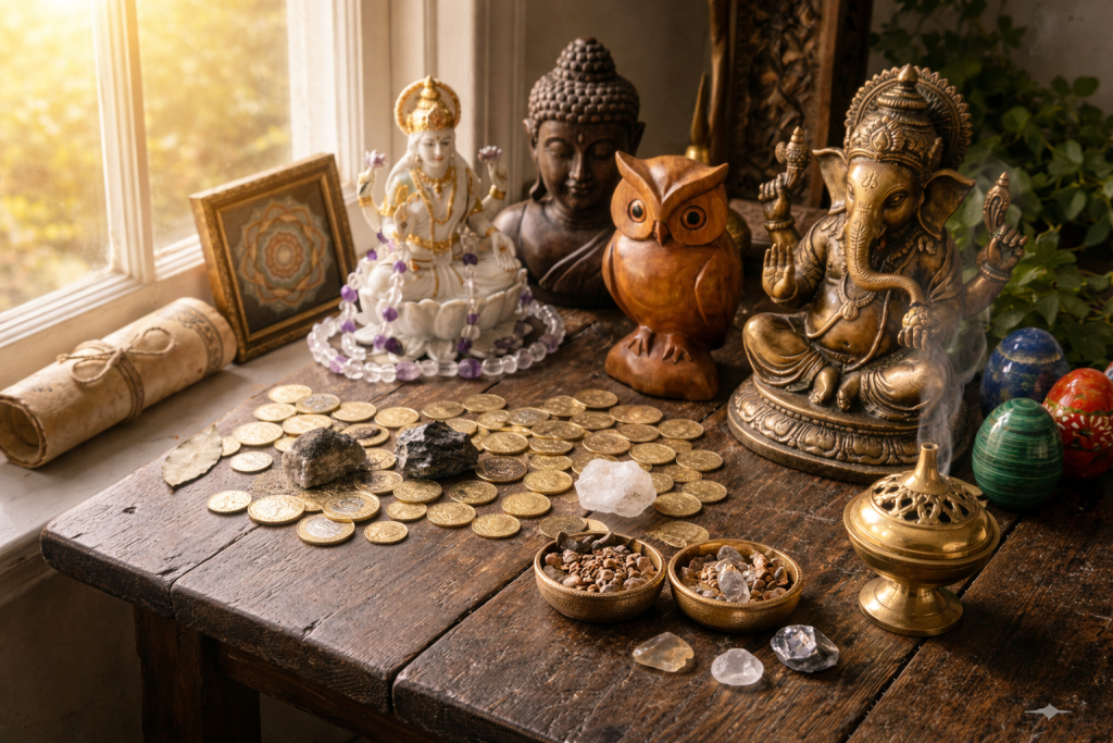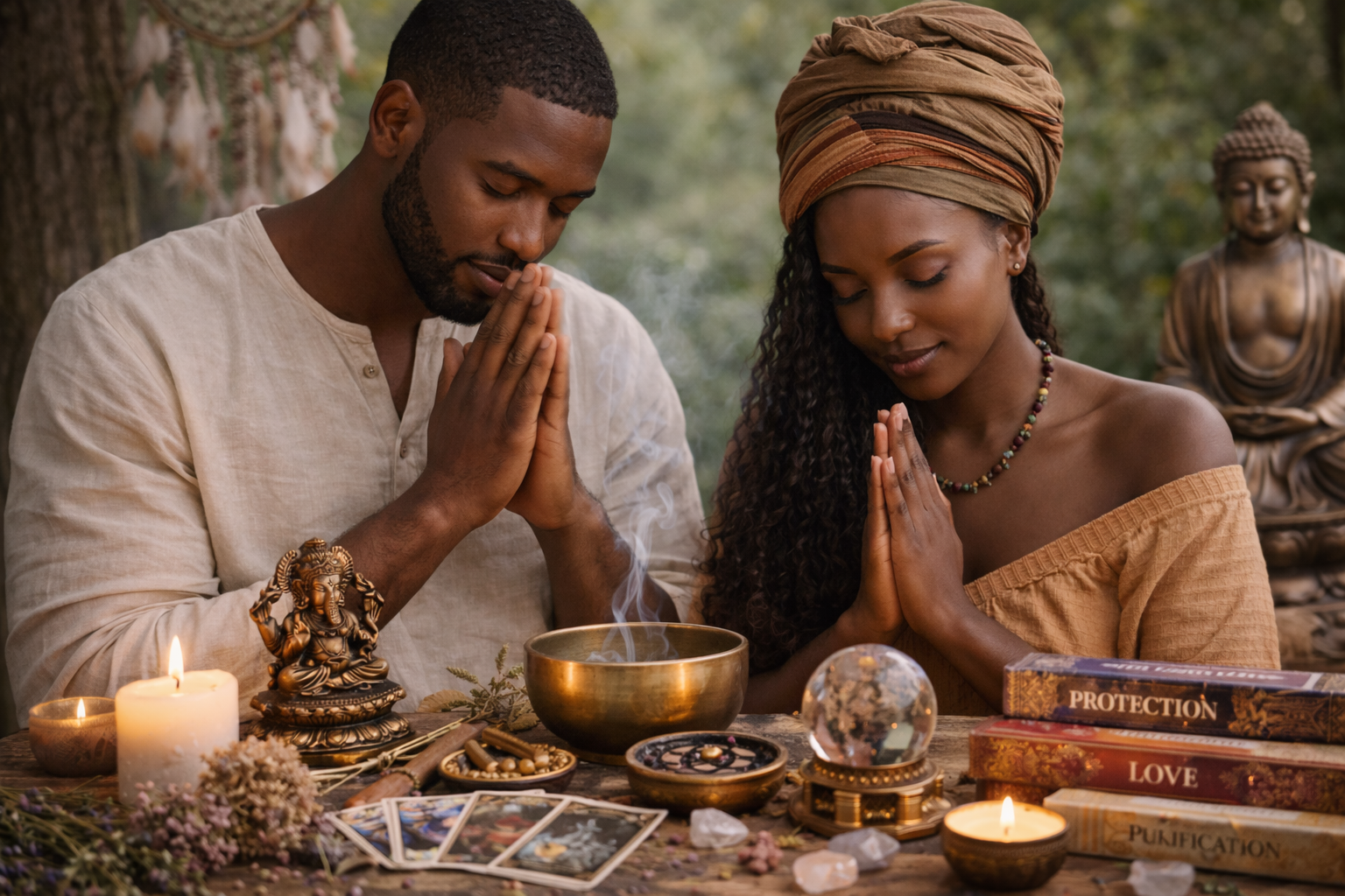 Explore a wide range of spiritual items including ritual candles, incense, oils, statues, crystals, and protective amulets.
